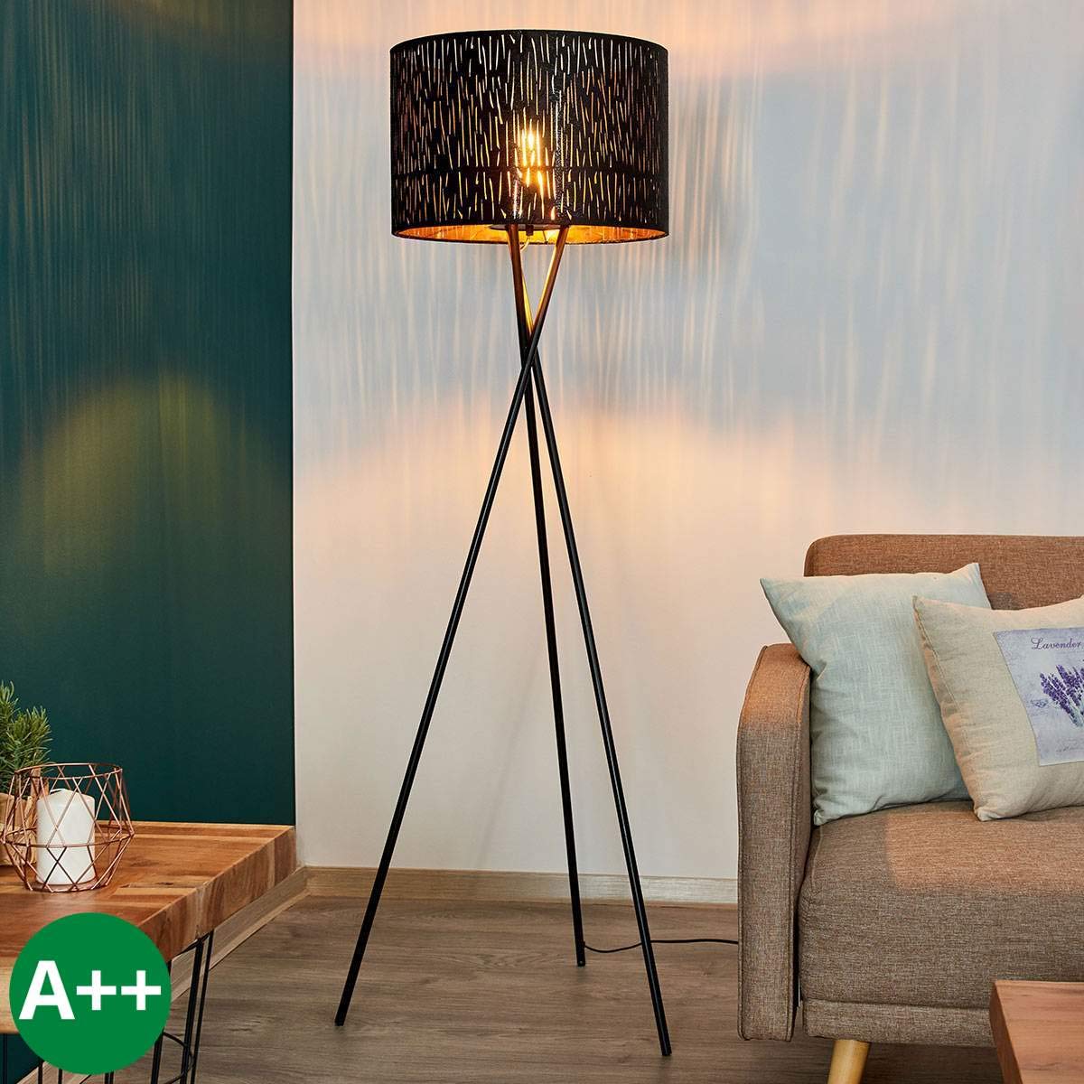 Dreibein stehlampe schwarz metall rund 145cm wohnraum beleuchtung wohnzimmer modern stylisch mina stehleuchte. Es gibt wohnobjekte die das wohlfühl ambiente in unseren vier wänden ganz besonders verstärken. Stehlampe dreibein in schwarz.